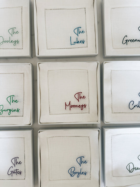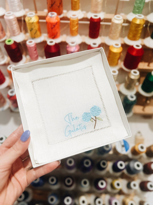 Personalized Hydrangea Linen Cocktail Napkins (Last Name)