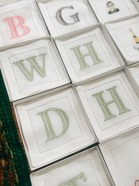 Single Letter Monogram Linen Cocktail Napkins - Ryan