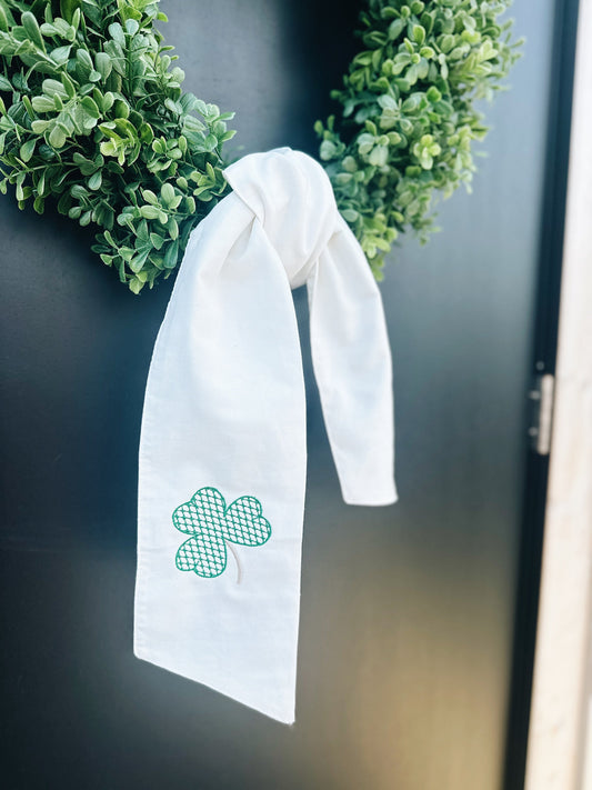 Blue Hydrangea Lime Wreath Sash with Ivory Ric Rac Trim