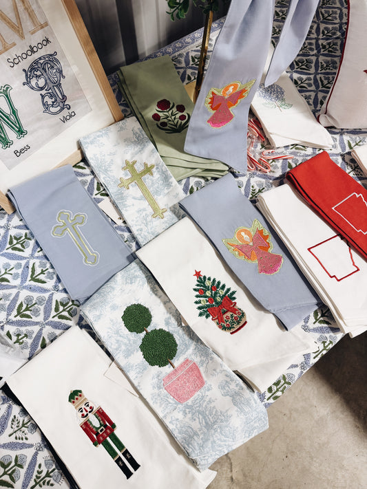 Simple Block Print Flower Tea Towel - Personalization Optional