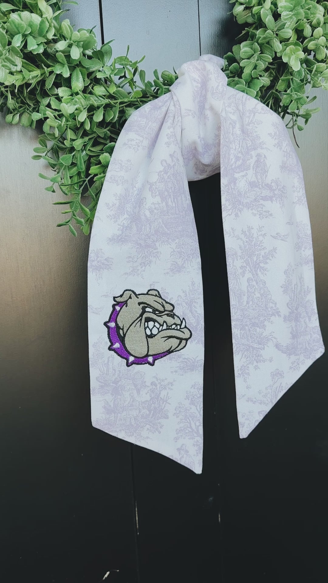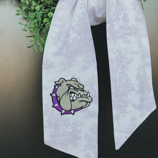 Show off your Fayetteville Bulldog Pride with this wreath sash! Personalize with your family’s initial or monogram. Thread color will be purple.